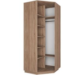 С левой стороны углового «Экспресса» располагается 5 полок, с правой — две полки и штанга для одежды. Снизу шкаф удерживает цоколь, чтобы он не упирался в плинтусы.